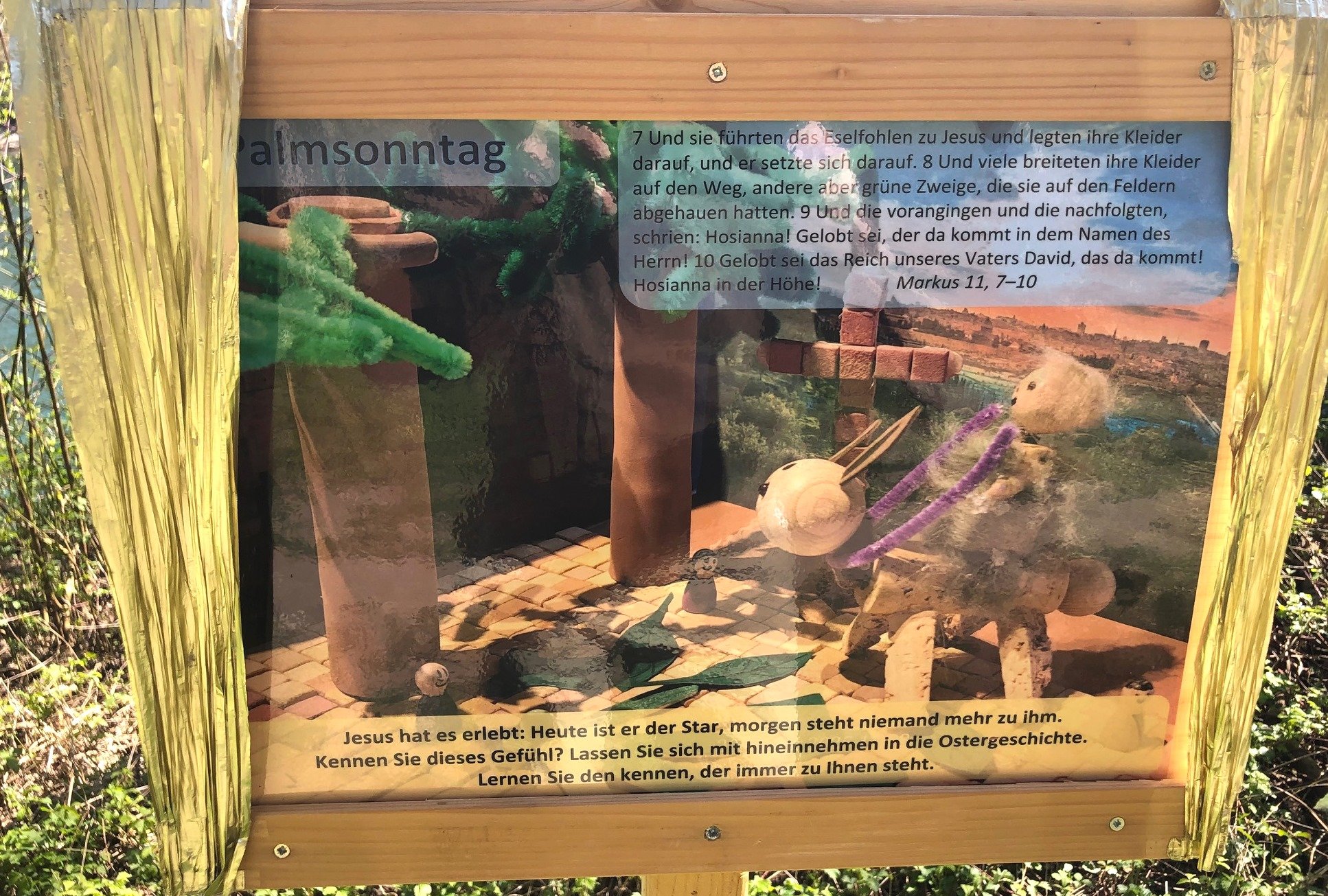 Bald ist Ostern inklusive Passionswoche. Im Umiker Schachen werden wir mit viel Nachdruck und naiver Kinder-Kunst zu ihr hingeleitet, ob wir das nun wollen oder nicht.